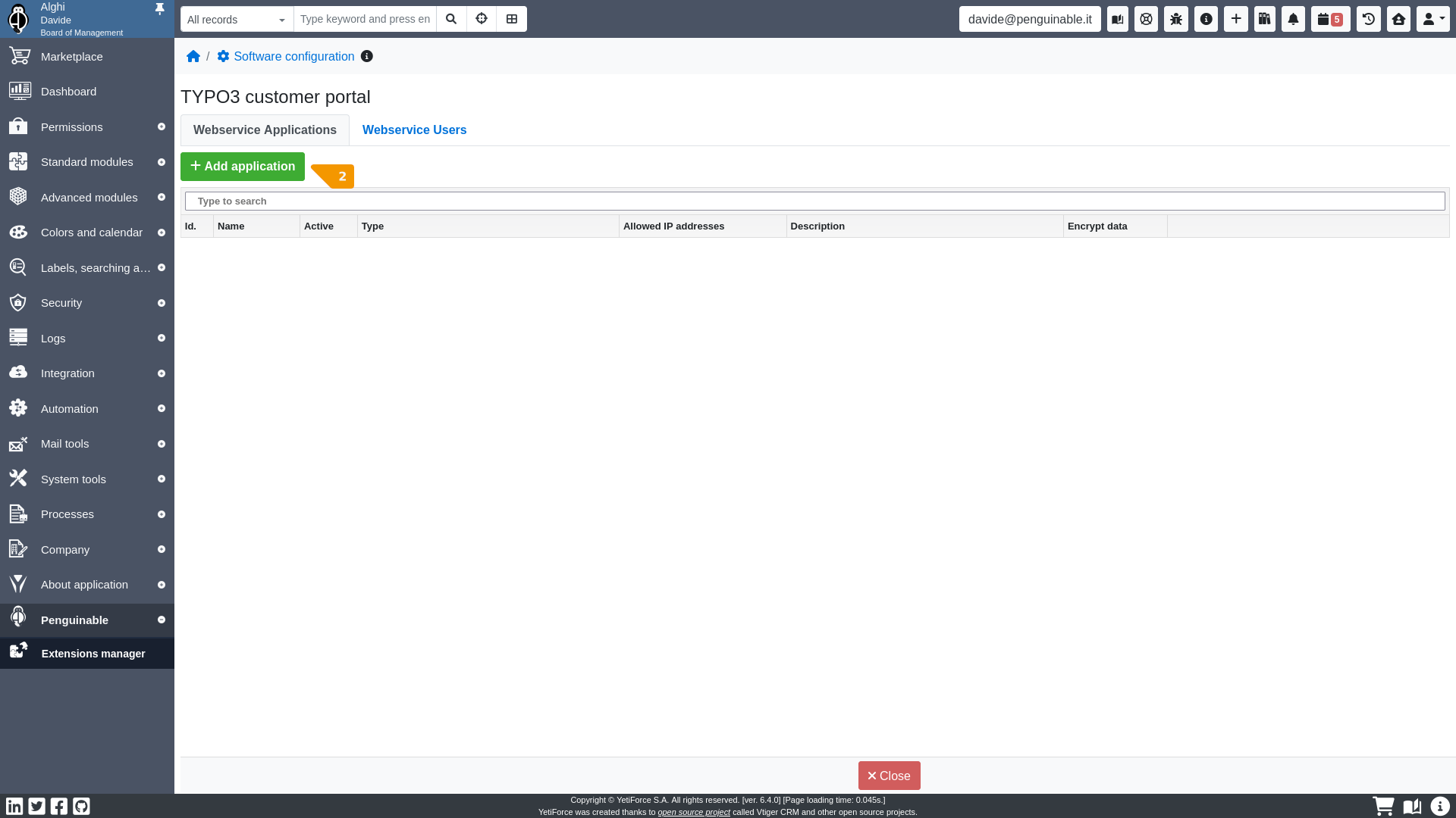 The webservice application record defines the endpoint to which the YetiForce Customer Portal will connect