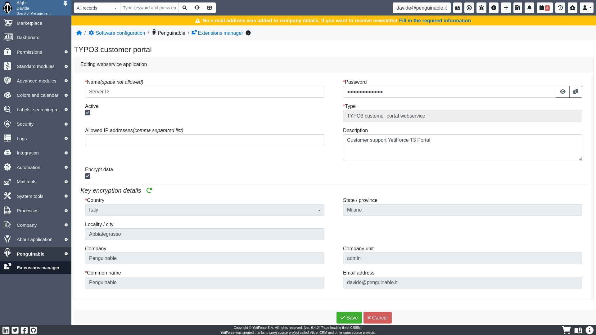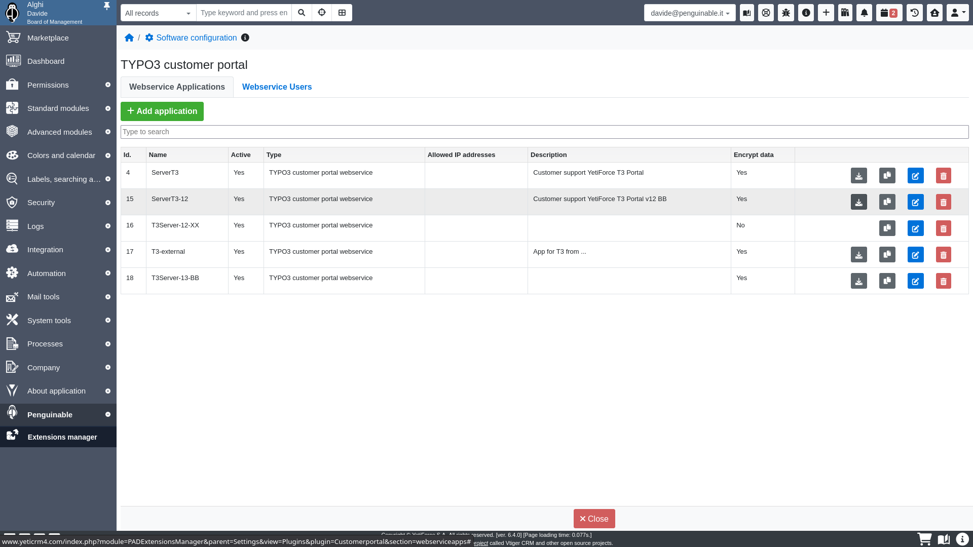 A single YetiForce Customer Portal (TYPO3 instance) can manage multiple YetiForce CRM instances.